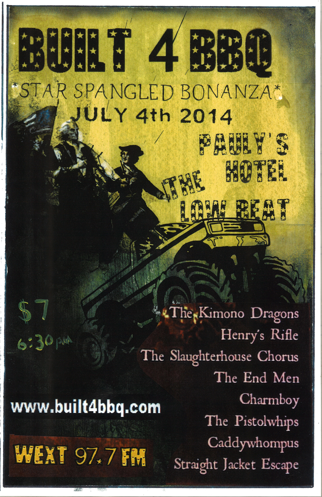 Today’s the day! Spend America Day with Built4BBQ at the Star Spangled Bonanza, featuring 8 awesome bands and the release of our second compilation album, The Entree! Come and get it!