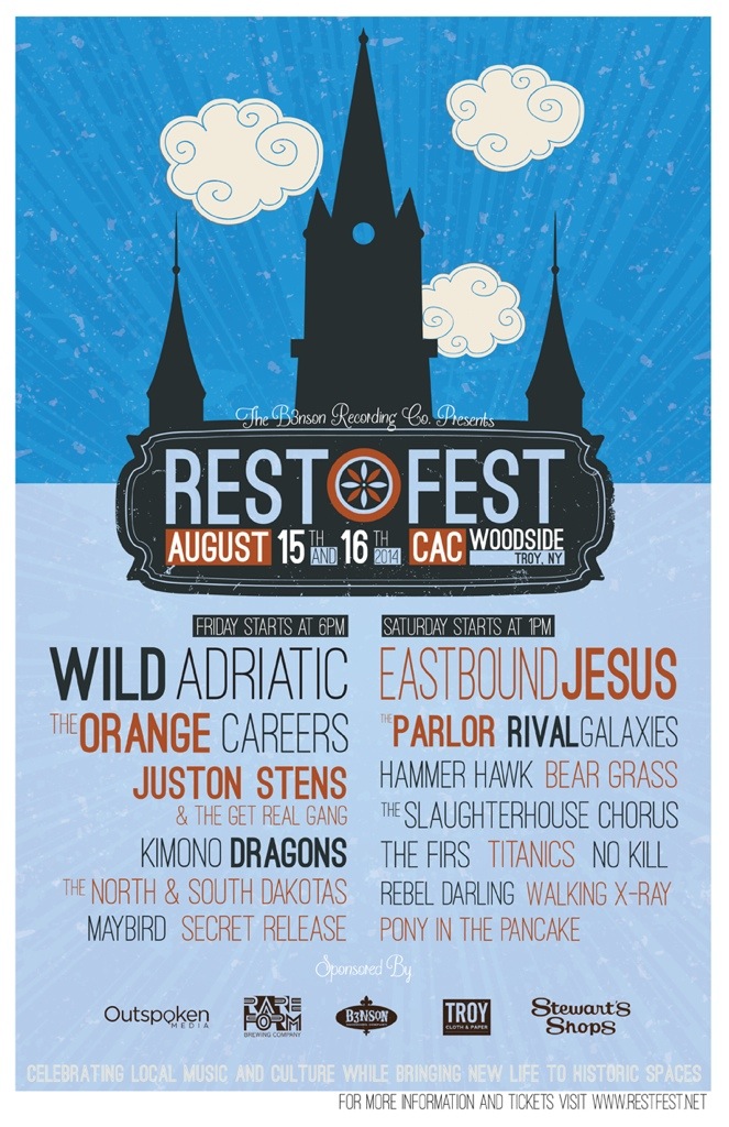 The fine folk at B3nson bring you the best darn party of the year this weekend… Yes, friends, it’s the 5th annual Restoration Festival this weekend at Troy’s CAC Woodside! 2 days, 2 stages, 20 killer bands, one low price. Catch Built4BBQ’s own The Slaughterhouse Chorus and Kimono Dragons, buddies and Entree stars Rival Galaxies and Hammer Hawk, and 518 faves like Rebel Darling, the Parlor, Eastbound Jesus, Wild Adriatic, and so many more it’s crazy, man! All in what is hands down the coolest, best sounding venue to ever allow rock music to happen in the Capital Region, and for a good cause! Find all the details and get cheap advance tickets at restfest.net or do the Facebook thing.